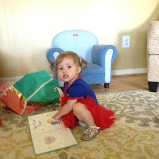I also think I had my first instance of sort of mom shaming... In the waiting room at the doctor's office Maybellene was tugging at her pony tail. She seems to be fascinated with her hair when it's pulled up and she always plays with it and asks about it. A lady in the waiting room looked at me and suddenly said - "she doesn't like her ponytail." Maybe she thought she was being helpful but it made me feel insecure and I kept babbling about the different reasons why I thought she did like her pony tail. But when I got home I took it out. But then I put her hair in pigtails because it's hot outside and her hair gets sweaty and seriously -- I think she doesn't mind her hair in a pony tail!